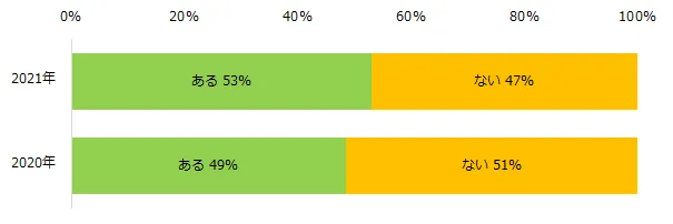 「これまでに仕事のかけもち・Wワーク・副業をしたことはありますか?」と伺うと、53%が「ある」と回答し、昨年よりも4ポイント高い結果になりました。開始したタイミングを伺うと、約8割の方が「新型コロナウイルスの流行前」(76%)と回答しました。