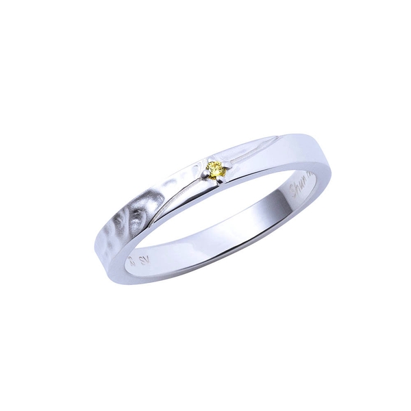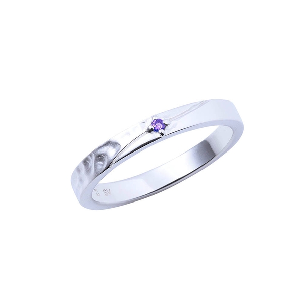 ストレートフォルムのリングにイメージカラーストーンをセットし、槌目×つや消し加工を施すことで、飾らない自然な雰囲気を表現しています。