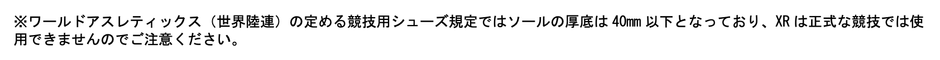 ※ワールドアスレティックス(世界陸連)の定める競技用シューズ規定ではソールの厚底は40mm以下となっており、XRは正式な競技では使用できませんのでご注意ください。