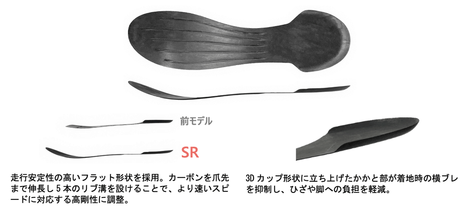 今回発売する2機種は、ランナーが求めるシューズの多様化に対応し、新形状カーボンと高反発クッションを用いて、それぞれの走行ペースに合わせた新次元の “跳ね進む”感覚を追求しました。