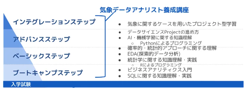 企業におけるビジネス創出や課題解決ができるよう、気象データ知識とデータ分析の知識を兼ね備え、気象データとビジネスデータを分析できる人材