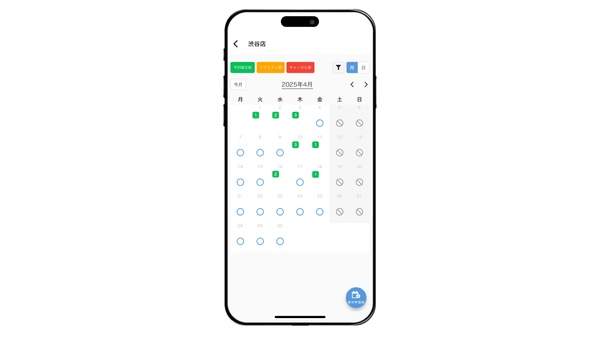 従来は「週」表示が初期状態だった予約カレンダーにおいて、表示形式を「月」へ切り替える設定が可能になりました。