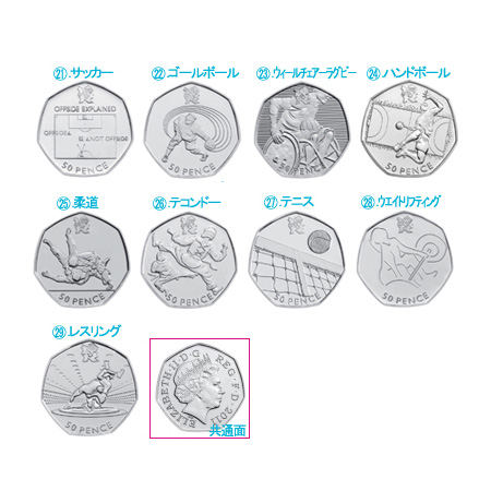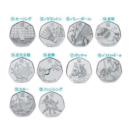 この50ペンス銀貨29種類のデザインは、2012年ロンドンオリンピック/パラリンピックの公式スポーツ29競技をテーマに、英国国民を対象にデザイン公募するという過去最大規模のコンテストによって選ばれたものです。大人から子どもまで、全国から何千点もの素晴らしい作品が寄せられ、その中から最も優れたデザインが記念貨となりました。英国では既に発売されており、ロンドン2012オリンピック/パラリンピックの記念グッズを集める人たちの間で大好評を博しています。