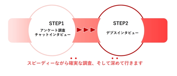 STEP ①:オンラインアンケートによる「広く浅く」のデータ収集と、チャットインタビューによる要所の「深堀り」を実施。