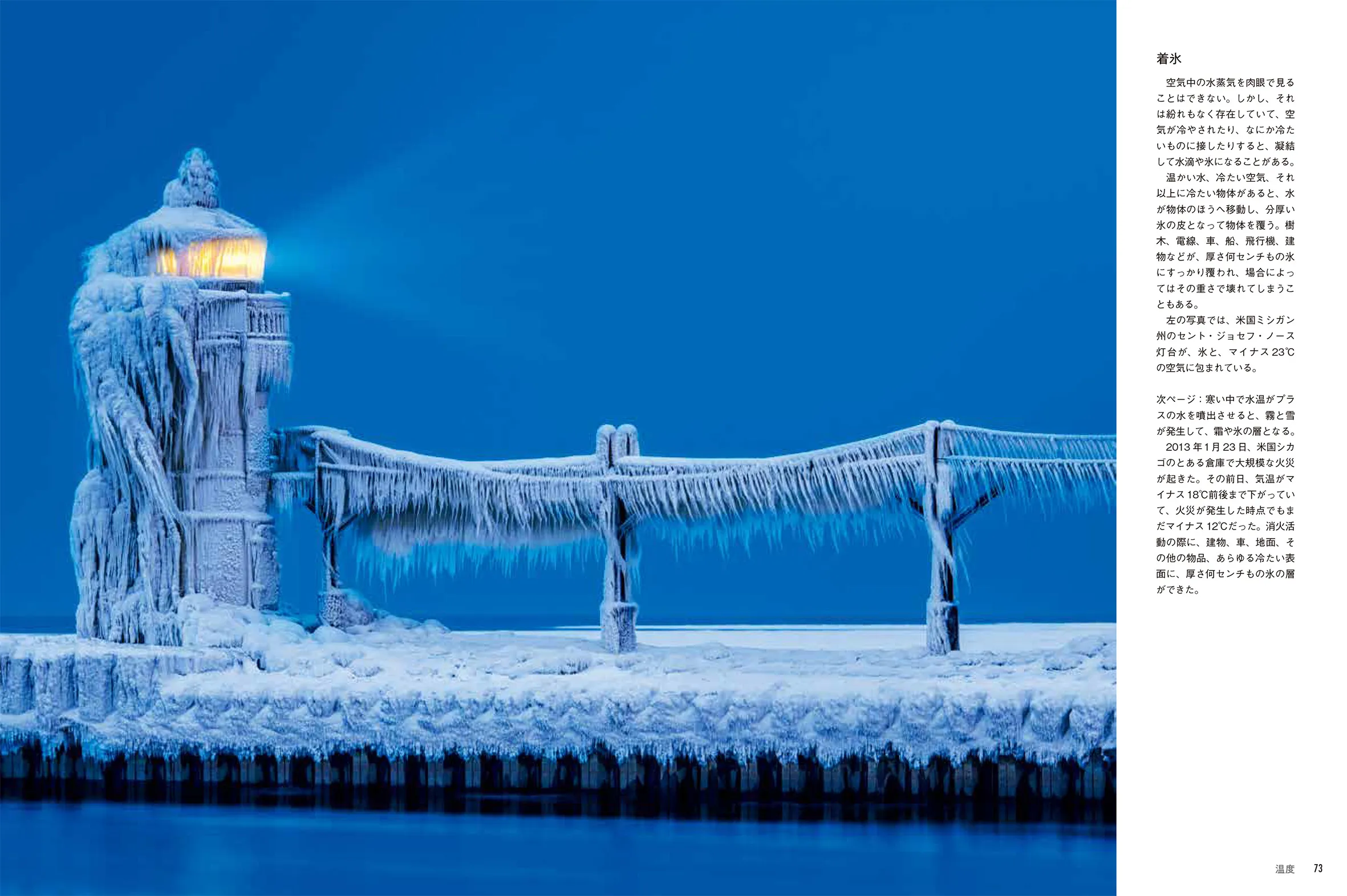 それそれの写真には、著者であるスウェーデンの気象学者マッティン・ヘードベリが状況をわかりやすく説明するキャプションが付いています。なぜ氷でできた雹が例外なく暑いときに降るのか? 美しい真珠母雲が現れたとき上空では何が起きているのか? 不思議な地形サーモカルストがどうやってできたのか?など、気象に関連する話題が盛りだくさんです。