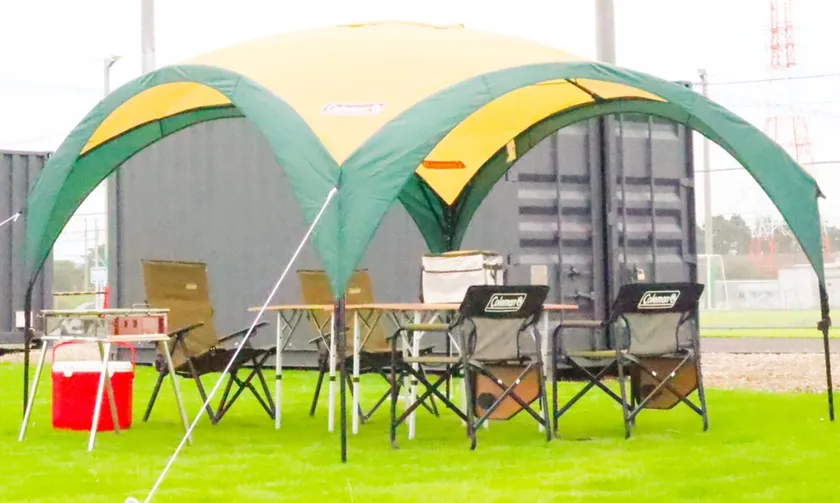 ・Coleman製のお洒落な形のパーティーシェードの下で楽しむSKY BBQエリア
