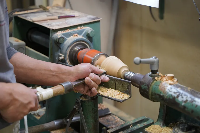 大量生産の時代となり、木工品も自動機にて作られる既製品が増えてきました。そんな中、自動機ではなく、職人さんが手の感覚で削るのにはわけがあります。手で削る細かい加工や表面の仕上がりは、自動機では再現できず、また機械で作られた形や仕上がりはどれも均一になってしまいます。パッと見ただけではわからないかもしれませんが、それは、人の温度感を感じない、どこか味気ない製品なのかもしれません。