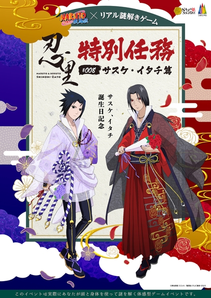 TVアニメ「NARUTO-ナルト- 疾風伝」のバースデースペシャル企画、好評につき第2弾、誕生日キャラ×リアル謎解きゲーム 7月はサスケ・イタチ、ニジゲンノモリ忍里で7/10(土)から