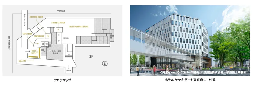 スターツコーポレーション株式会社を代表企業とするスターツグループが事業者として選定された「府中グリーンプラザ敷地活用事業」の一環として『ホテル ケヤキゲート 東京府中』の2階にオープン。幅広い世代にご利用いただける「交流の場」を複数設け、賑わいや新たなビジネス創出を促します。