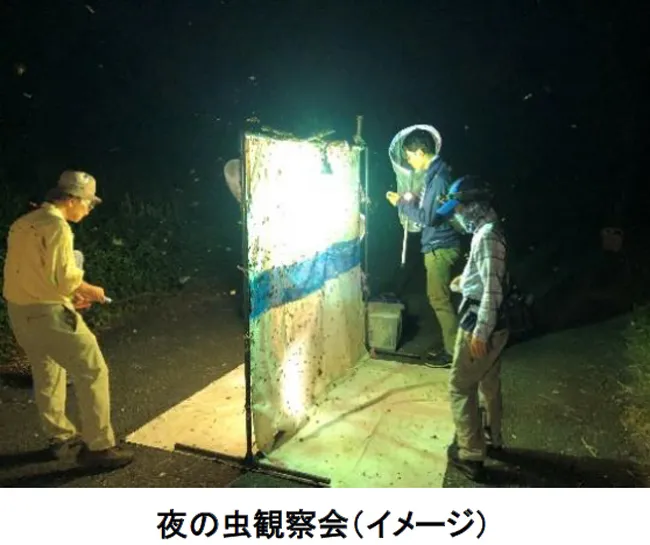 夜間、園内で照明を点け、灯りに集まる虫を観察します。伊丹市昆虫館学芸員の解説とともに、昼間は見られない虫の姿を見ることができます。