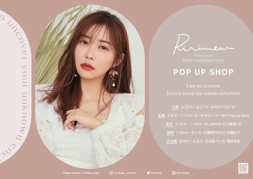 楽天市場ランキング5冠に続き、各ベスコスを獲得! 指原莉乃プロデュースコスメブランド『Ririmew』 全国5大都市で待望のポップアップショップ開催決定! ここでしか手に入らない限定ノベルティも!