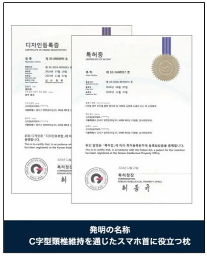 そんな症状に悩んでいる方々のために、睡眠時に首のケアができる科学的な枕の開発がはじまり、機能枕認知特許番号を取得したのが、この「ネックドクターピロー」です。