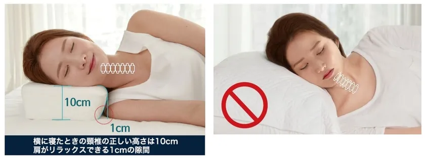 横向きで寝たときに、首から背骨にかけて一直線になる正しい姿勢をキープします。