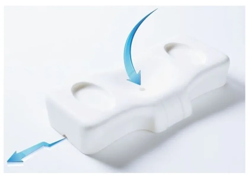 枕の上部中央と下部に空気の通り道を作成し、高密度フォーム内の空気を循環させるように設計しました。