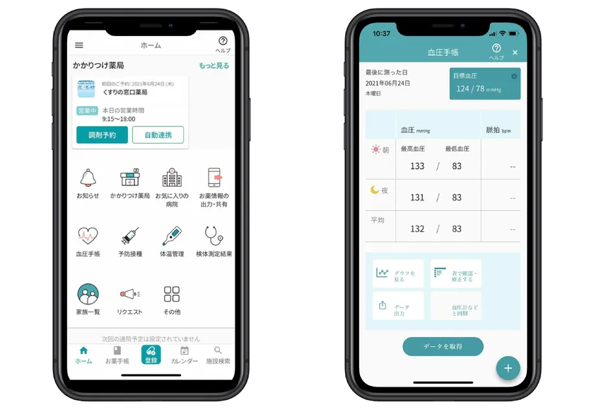 当アプリは患者様には無料で提供、導入いただいた薬局様では、お薬情報確認・予約受付ができる管理画面から業務の効率化や患者様とのコミュニケーションツールとしてご活用いただいています。ユーザー様からの要望やご意見を反映し、今まで以上に健康管理情報を管理しやすいアプリとして進化を続けております。2020年より健康管理上の利便性を向上させるため、お薬手帳機能だけではなく血圧手帳や予防接種予定管理、体温管理などの機能を追加しています。