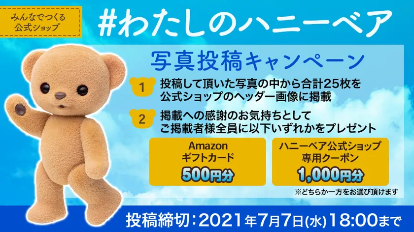 ハニーベア公式オンラインストアにて「#わたしのハニーベア」 写真投稿キャンペーンを7月7日(水)まで実施!