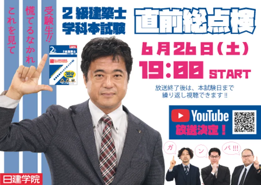 6月26日(土)19:00~ YouTube 日建学院チャンネルにて