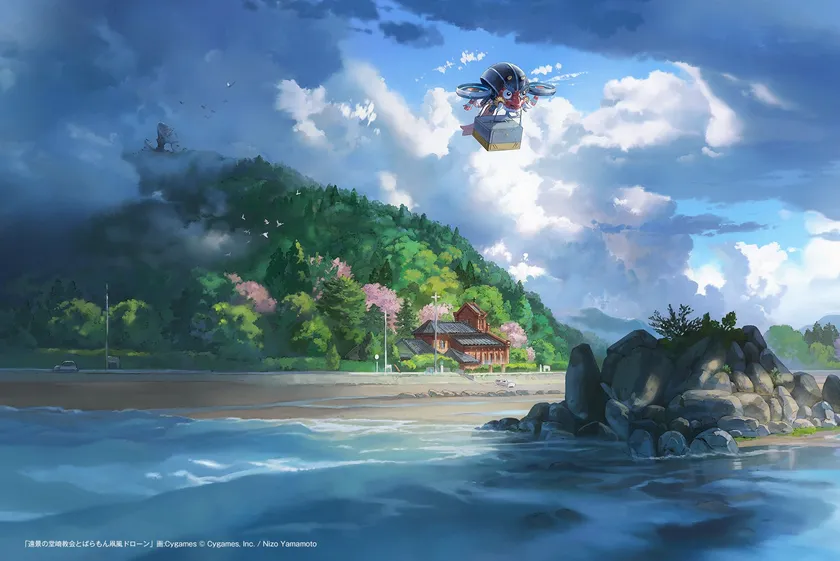 サイゲームス描き下ろし『堂崎教会とばらもん凧風ドローン』
