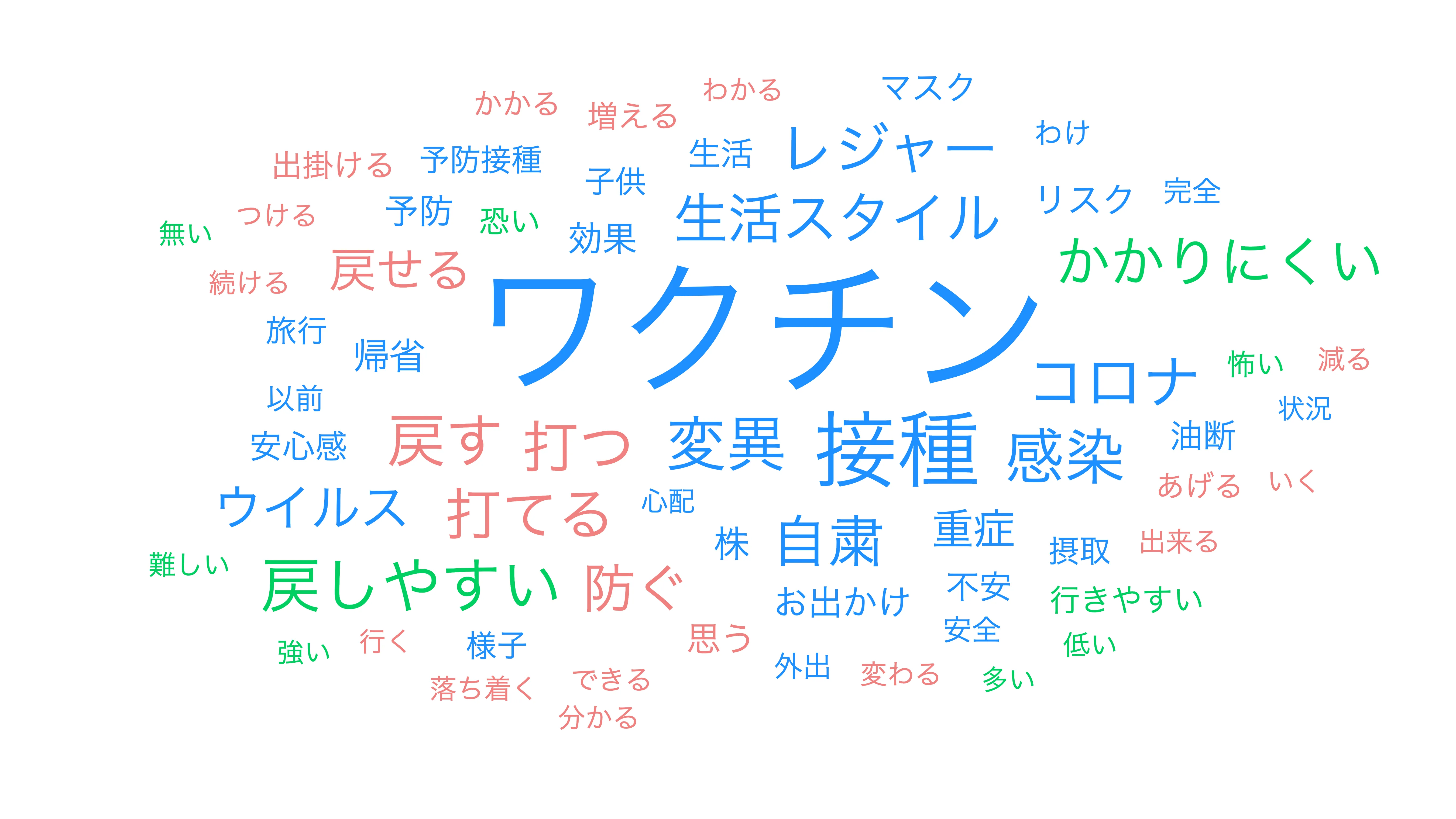 過去のアンケートでは、ワクチン摂取をひとつの区切りとして元の生活に戻すという声が多くありましたが、摂取後の副反応や子どもの対策がないという現実を直視し、まだ安心できないという意識を持つ方が多くいることが浮き彫りになっています。