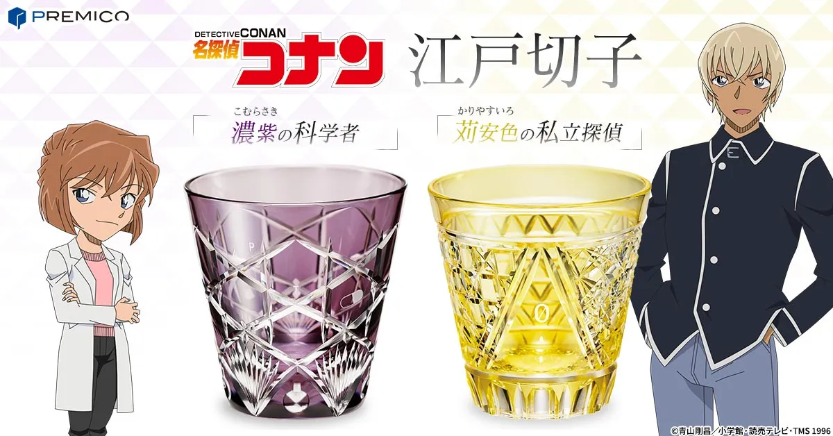 『名探偵コナン』と伝統工芸「江戸切子」の煌びやかな共演! 灰原哀と安室透をイメージした2種の江戸切子グラスが登場! プレミコから数量限定で販売開始