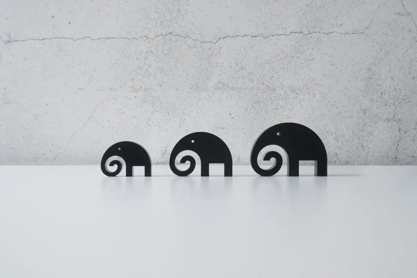 なかでも特に愛着があったのは丸みを帯びたおおらかなゾウ。小型オーナメント製作に際しては想像以上に困難を極め、一時は断念したものの、高精度加工技術をもつ栗原精機と出会うことでシンプルで美しい形の再現に成功。ゾウシリーズの誕生です。サイズはS M Lの3サイズ展開で子、母、父とファミリーでお楽しみください。