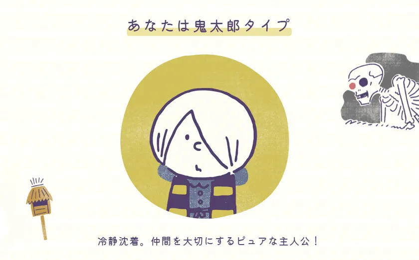 ↓占い結果イメージ「Hey, KITARO」妖怪占い 鬼太郎タイプ