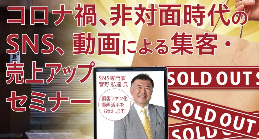 本セミナーでは、日常のツールとなったSNS、動画を駆使して、集客・売上をアップする手法をSNS専門コンサルタント菅野 弘達氏が数多くの事例によって分かり易く解説します。
