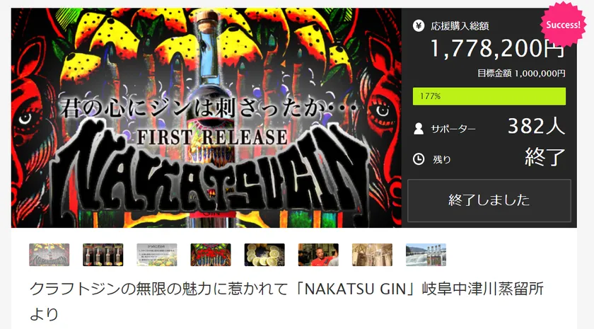 Makuake「NAKATSU GIN」掲載ページ