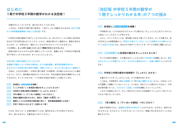 『改訂版 中学校3年間の数学が1冊でしっかりわかる本』は、2021年度からの新学習指導要領にあわせてリニューアル。