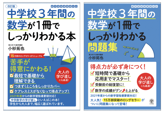 株式会社かんき出版(本社:千代田区 代表取締役社長:齊藤龍男)は、『改訂版 中学校3年間の数学が1冊でしっかりわかる本(小杉拓也/著)https://kanki-pub.co.jp/pub/book/details/9784761230319 と『中学校 3 年間の数学が1冊でしっかりわかる問題集 』 ( 小杉拓也/著)https://kanki-pub.co.jp/pub/book/details/9784761230326 を 2021 年2月18日より全国の書店・オンライン書店等(一部除く)で発売いたします。