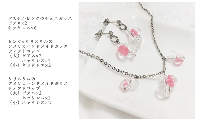 ピアスとネックレスのセット(ピンク系・ブルー系)各10点 8,000円(税込)