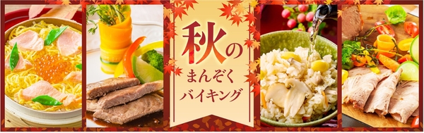 また、バイキングスタイルでおもてなしする全国34(*2)の温泉宿で、9月1日から「秋のまんぞくバイキング」がスタートしたばかり。各宿が趣向を凝らした、食欲の秋にぴったりなメニューがずらりと並びます。