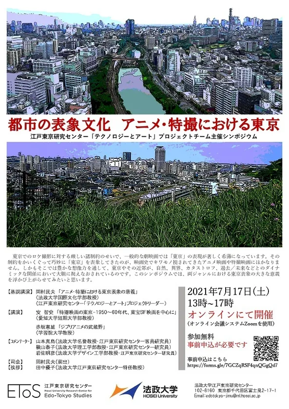 法政大学江戸東京研究センター(東京都千代田区)では、7月17日(土)にシンポジウム「都市の表象文化 アニメ・特撮における東京」をオンラインにて開催します(参加費無料/事前申込要)。