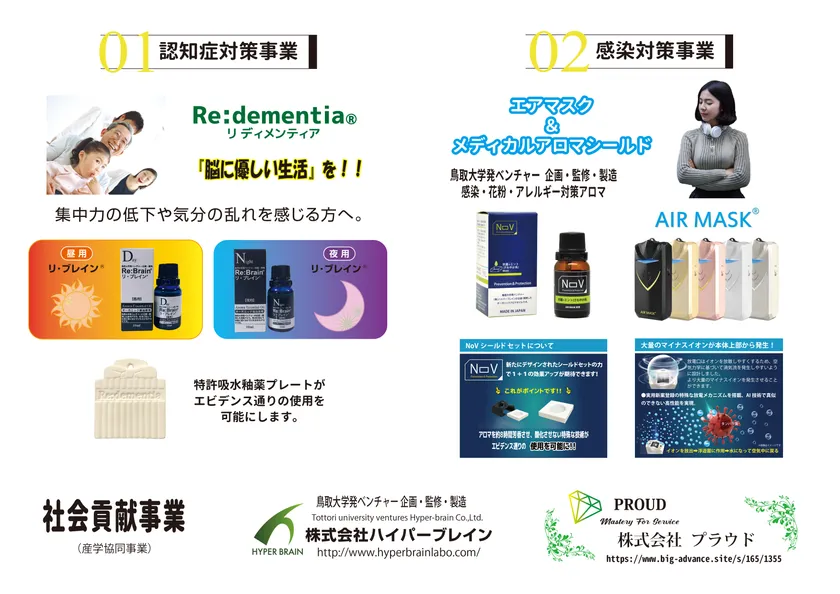 株式会社プラウドは『認知症対策事業・感染対策事業』を社会貢献事業として産学共同で、推進しています。ご興味のある方は、下記ホームページ、問い合わせメールまでご連絡ください。