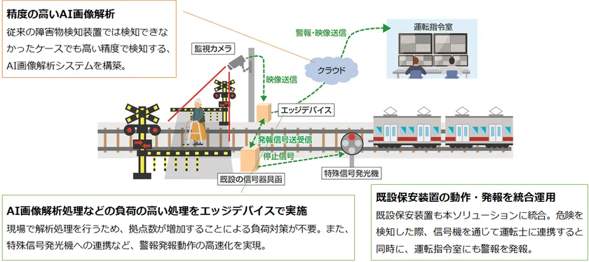 当社は、国内初となるAI画像解析技術を踏切道の安全強化策に適用する「踏切AI監視カメラソリューション」サービスとして6月29日に提供を開始いたします。