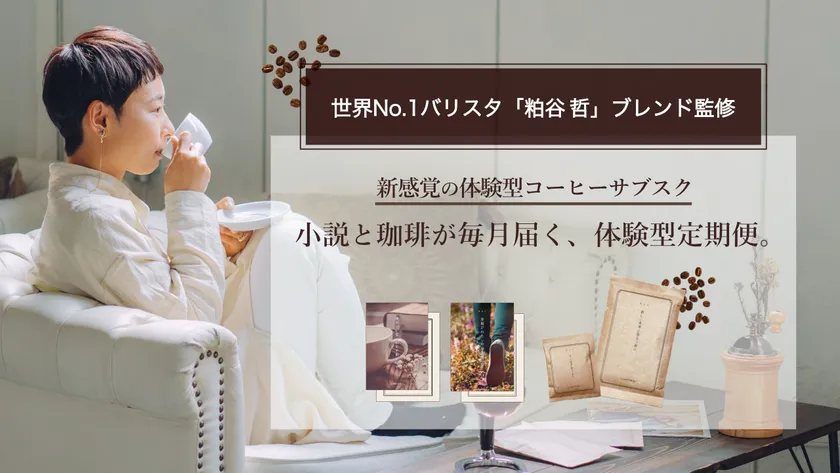 “小説とコーヒーが毎月届く”新感覚の体験型コーヒーサブスクとして、日常で大切にしたいシーンに合わせてブレンドしたコーヒーと短編小説を毎月2つお届けするサービス『ものがたり珈琲』。