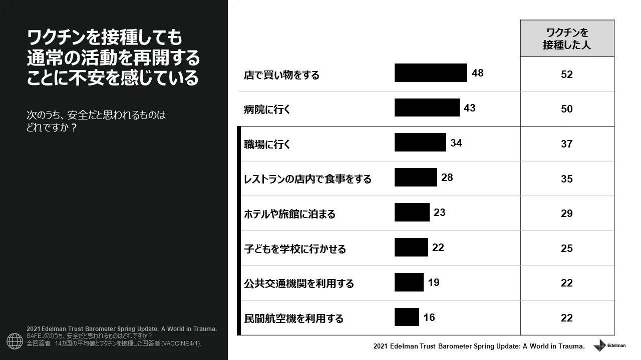 ◆ワクチンを接種しても、人々は通常の活動を再開することに不安を抱いている