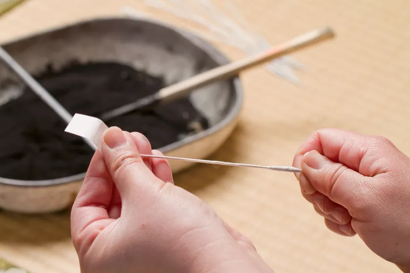 松煙、硝石、硫黄を配合して作られる0.08gの黒色火薬を和紙に包み、職人たちが一本ずつ縒ってできたこの線香花火。