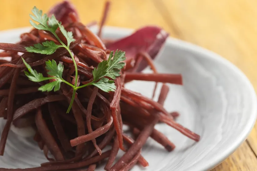赤ワインビネガーで煮込んだ、きんぴらごぼう風。和と洋が融合された日本人なら必ず虜になる味です。