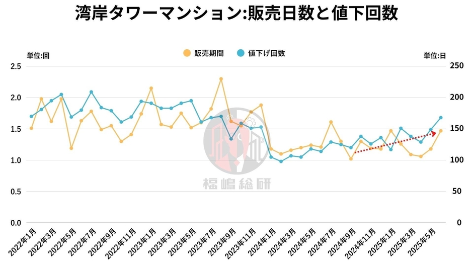 タワーマンション市場の温度感を測るうえで重要なのが、 販売日数 と 値下げ回数 です。