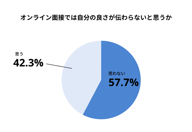 42.3%がオンライン面接では自分の良さが伝わらないと「思う」と回答