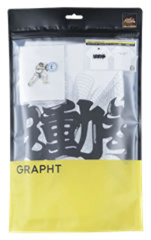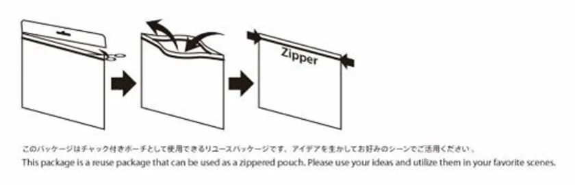 GRAPHT GAMING LIFEは、無駄をなくし、役目を終えてゴミになるパッケージが持つ機能を見直して再構築する、「不必要なモノ=別の価値あるモノ」という等式をつくるため、すべての商品のパッケージを再利用できるよう設計しています。こちらのパッケージはチャック付きポーチとして再利用可能です。