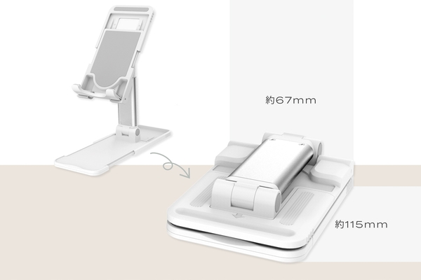 様々な形状のスタンドがありますが、コンパクトに折り畳み可能な持ち運べるタイプで、タブレットまで対応しているスタンドは使い勝手も良く、様々なシーンで活躍する商品です。