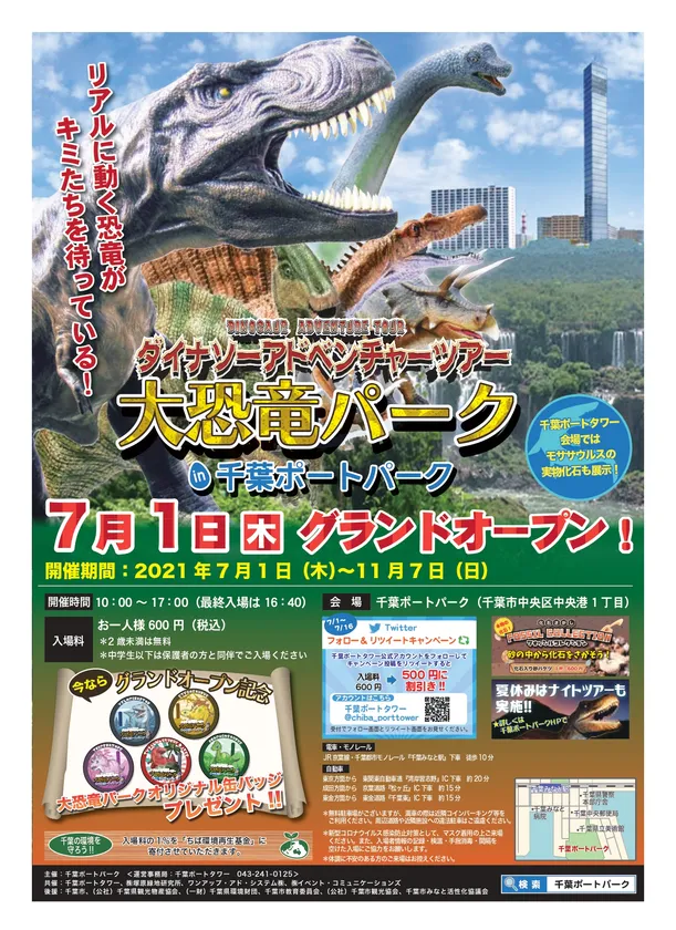株式会社塚原緑地研究所(本社:千葉市美浜区、代表:塚原 道夫)は、千葉ポートパークで恐竜イベント「ダイナソーアドベンチャーツアー大恐竜パークin千葉ポートパーク」を初開催します。