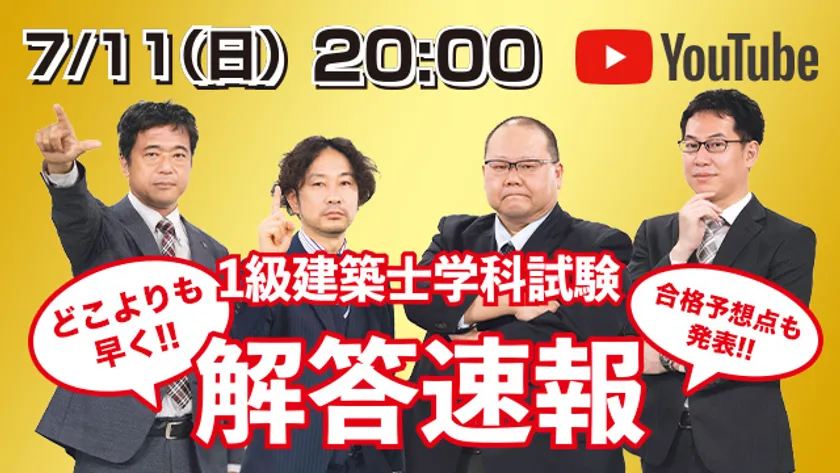 【1級建築士 学科本試験 解答速報 YouTubeにて試験当日無料LIVE配信!】