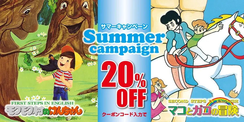 ブリタニカ・ジャパン株式会社(東京都品川区、代表取締役社長:須藤 みゆき)は、日頃のご愛顧に感謝を込めて、「モクモク村のけんちゃん DVD」、「マコとガコの冒険」、「モクモク村のけんちゃん DVD+CDセット」、「モクモク村のけんちゃん DVD」+「マコとガコの冒険」セットが、ブリタニカ・オンライン・ストアにて20%OFFで購入できるサマー・キャンペーン・クーポンを配布します。キャンペーンは2021年7月1日(木)から7月31日(土)までです。