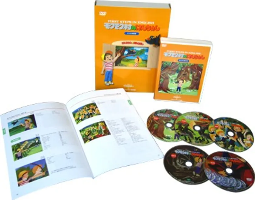 3つの冒険物語と、童話、クイズ、歌などがつまった英語のおもちゃ箱が、DVDとCDに。「モクモク村のけんちゃん」で覚えた英語表現をもっと発展させ、子どもの好奇心や遊び心を英語につなげて、聞くだけでなく自分の気持ちを伝えたいという、表現への意欲をうながします。