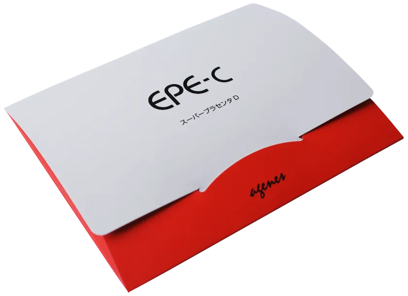 そこでアジェンズでは、医療研究開発と同様の考え方で管理、開発、製造を行ったEPEs(プラセンタ錠)の開発提供を行い、昨年、EPEsの吸湿安定性・匂い、利用効率などの課題をさらに改善したスーパープラセンタDのリリースを行いました。EPE-C スーパープラセンタDは、クリニックに提供しているものを一般向けにしたメディカルサプリメントです。
