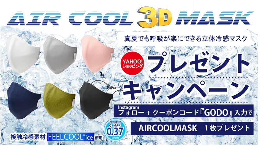 GODO DESIGN STUDIOは、真夏でも呼吸が楽にできる立体冷感マスク『AIR COOL MASK』の出荷枚数5万枚突破を記念して、7月2日より真夏の期間限定プレゼントキャンペーンを実施しております。