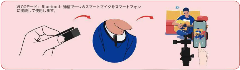 1. VLOGモード:いつでもどこでも簡単にブログが作れる、デジタルレコーディングで高品質録音(スマートマイク+を1個使用)